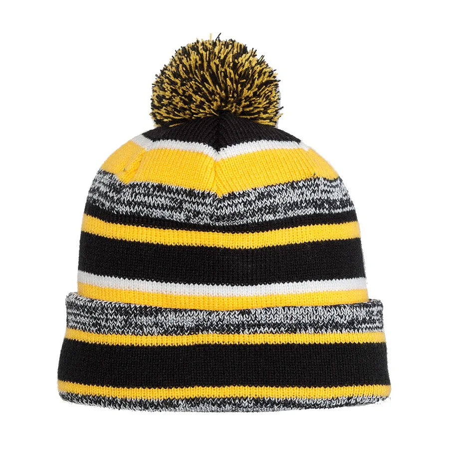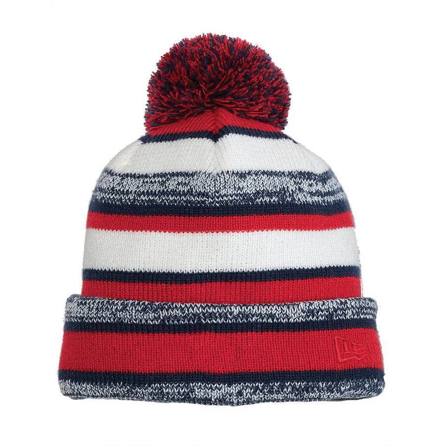 Heather stripes, dual-colored pom and warm fleece lining make the Sideline Beanie a must have for winter.